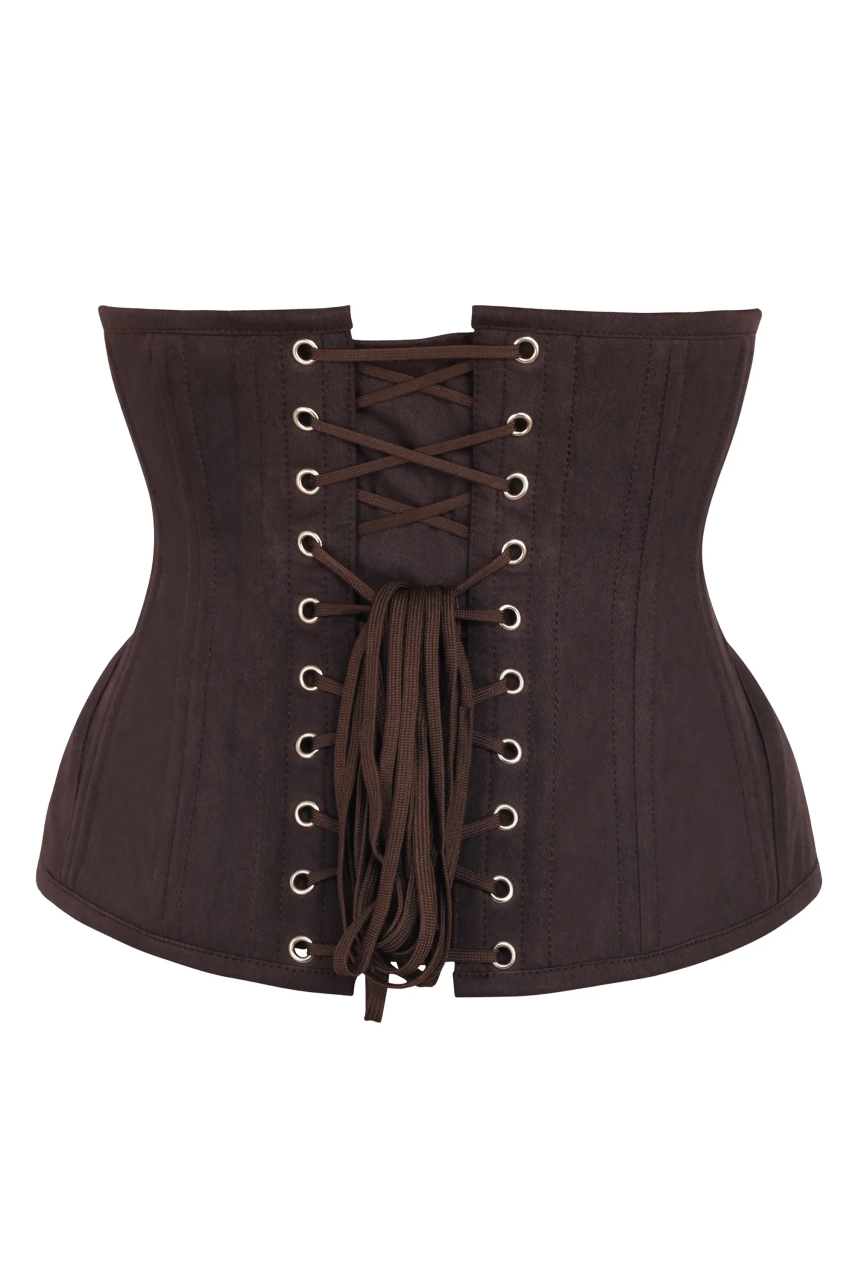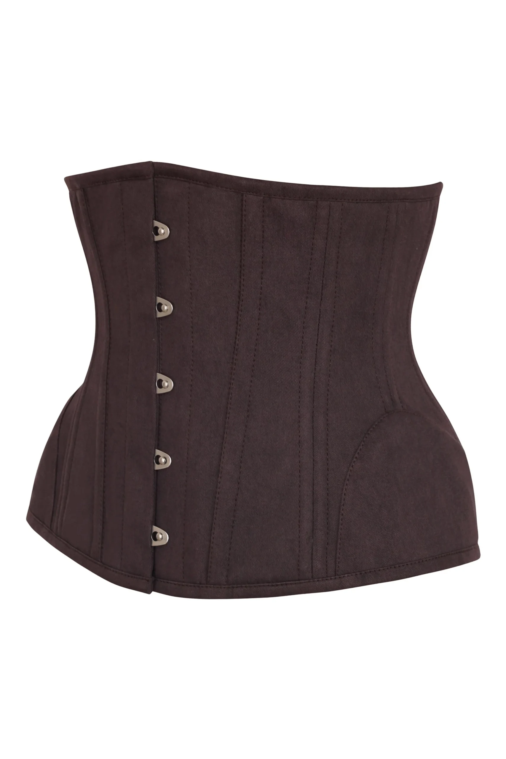 The corset comes in a rich espresso shade that adds sophistication to any outfit. Its classic cotton twill fabric makes it stylish yet practical. This shade works well with both light and dark clothing, giving you plenty of styling choices.